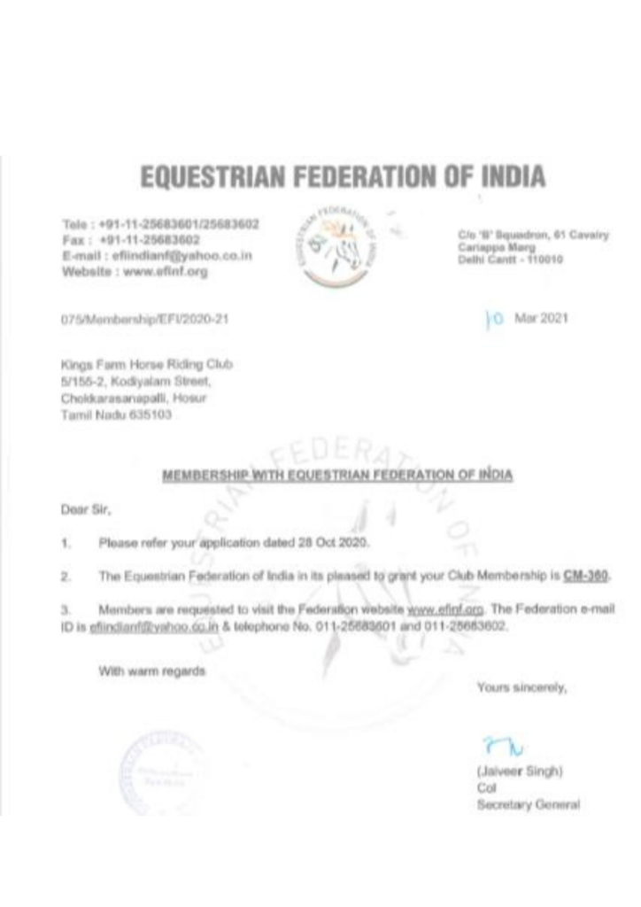 Development of Coaches and Instructors: To sustain the momentum of grassroots development, they may also channel their efforts into the training and certification of coaches and instructors who possess the requisite expertise to effectively teach equestrian skills to aspiring riders.Participation in National and International Forums: As esteemed members of the Equestrian Federation of India, they wield a considerable influence in shaping policies and programs pertinent to equestrian sports at both the national and international levels.