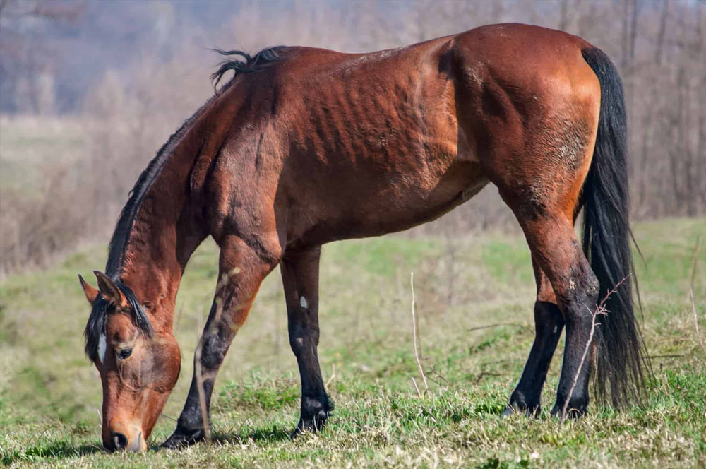 ONE OF THE HORSES WHO LOST AN EYE TRYING TO EAT FROM A TREE