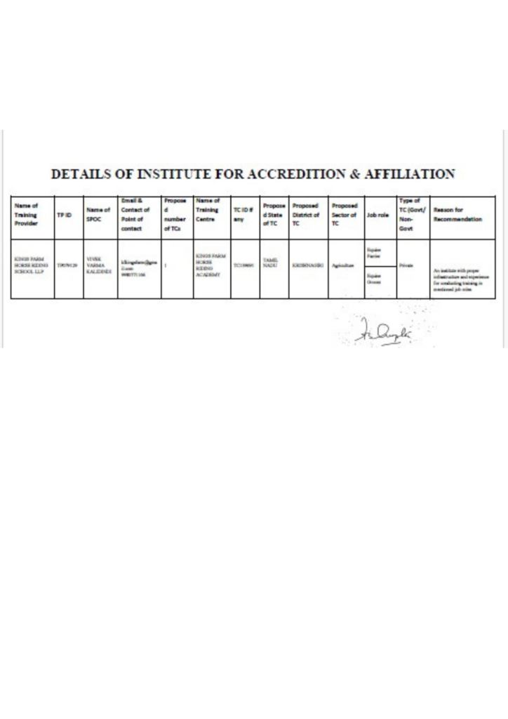 An Equine Groom being the companion of equines is responsible for the animals’ daily feeding, grooming, stabling and pre & post riding/ work preparations. A groom can understand the symptoms of diseases, injuries and other discomforts affecting the animal. A groom should be able to administer basic first aid and report the matter to concerned senior. S/he should take care of the safety of self and the animals while working.